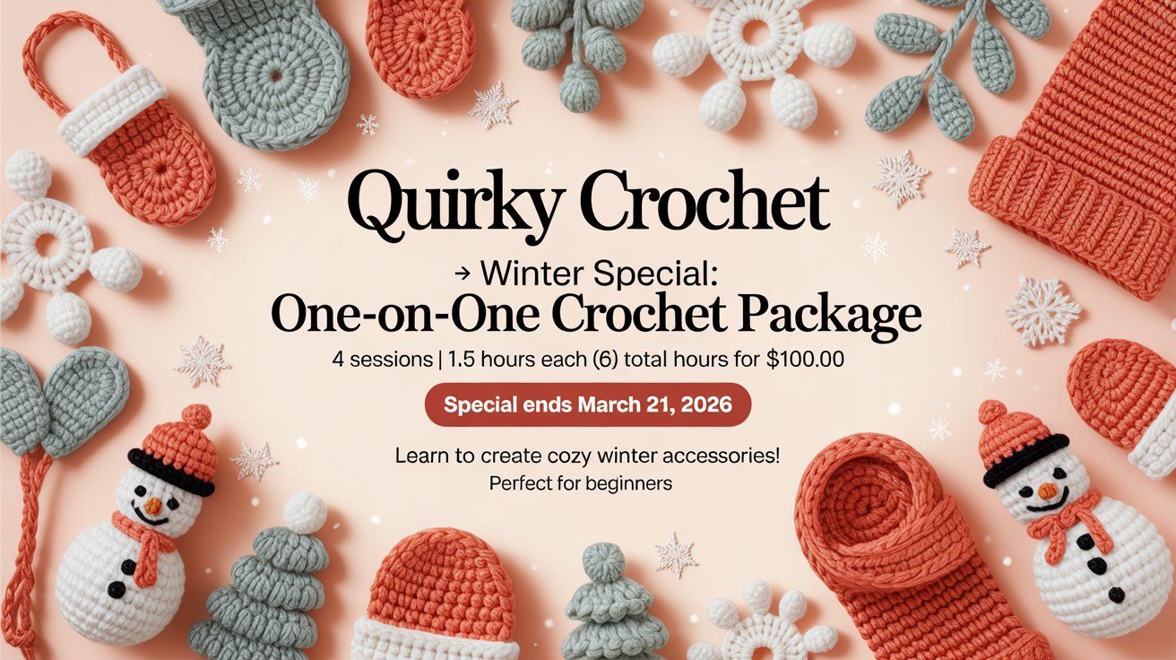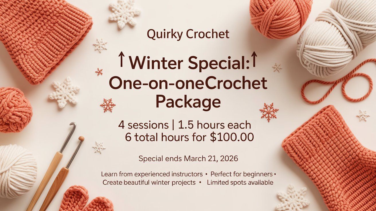 Unlock the art of crochet with personalized, one-on-one sessions tailored just for you! Whether virtually or in person, our experienced instructors will guide you through every stitch, ensuring you master the craft with confidence. Embrace the joy of creating beautiful, handmade pieces- Sign up now for a unique, hands-on learning experience. Here are the benefits of one-on-one instruction: